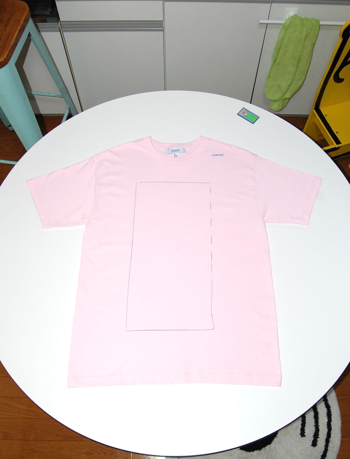 ワンウォッシュ後、乾燥機をかけることで通常のボディよりもボックスシルエットに近づけています。
